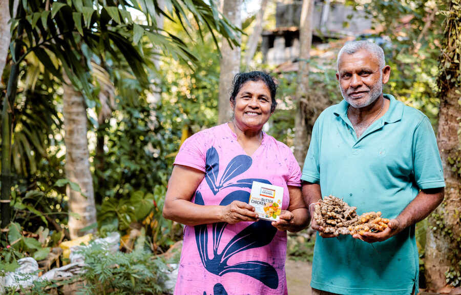 Laten zien, proeven en ruiken dat het anders kan, dat is wat we doen. Met meer smaak en minder ongelijkheid. Achter iedere kruidenpasta zit een krachtig verhaal, zoals dat van kruidenboerin Kalyani uit Sri Lanka. In haar tuin groeien kurkuma, gember en citroengras, die ze levert aan de fabriek én verkoopt in haar nieuwe dorpswinkeltje. Dankzij Fairtrade investeert ze in drainage, een zonnepaneel, werktools en het betalen van arbeiders. Samen met haar man Nimal leeft ze volgens één principe: respect voor mens en natuur. Zo werken we samen aan een leefbaar inkomen voor boeren.