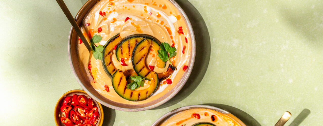 Een kom vol comfort, dat is deze kruidige linzen-Kokossoep met geroosterde pompoen! De Rode Curry kruidenpasta zorgt voor de spicyness, de Kokosmelk maakt alles lekker creamy. Terwijl de pompoen lekker roostert in de oven, doe jij de rest van het werk. Kortom, een perfecte soep voor de koude herfstdagen.